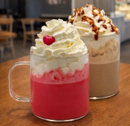 Ingrediente: FRISCA din SMANTANA UHT, zmeura congelata, ciocolata alba (unt de cacao, indulcitori green sugar (eritritol, steviol glicozide), substanta uscata din ZER praf, cacao, LAPTE praf integral, LAPTE praf degresat, lecitina de floarea-soarelui, arome naturale), BRANZA proaspata de vaca (LAPTE de vaca, culturi lactice, cheag, clorura de calciu), faina alba de GRAU, indulcitor green sugar (eritritol, steviol glicozide), LAPTE, OU, colorant natural din sfecla rosie, gelatina, UNT 83% grasime (din LAPTE), amidon, praf de copt, ulei de floarea-soarelui, coacaze, sare.
